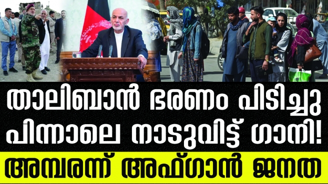 അഫ്ഗാനിസ്ഥാന്റെ തലസ്ഥാന നഗരമായ കാബൂൾ കൂടി കീഴടക്കിയതോടെ അഫ്ഗാനിലെ അഷ്റഫ് ഘാനിയുടെ സർക്കാർ താലിബാന് മുന്നിൽ കീഴടങ്ങി എന്നുള്ള വാർത്തകളാണ് ഇപ്പോൾ പുറത്ത് വരുന്നത്. കാബൂളില് ഒരു രക്തച്ചൊരിച്ചില് ഉണ്ടായാല് അത് വന് ആള്നാശത്തിന് കാരണമാകുമെന്നതിനാലാണ് യുദ്ധം ഒഴിവാക്കി അഷ്റഫ് ഘാനി സ്ഥാനം രാജിവെച്ചത്.