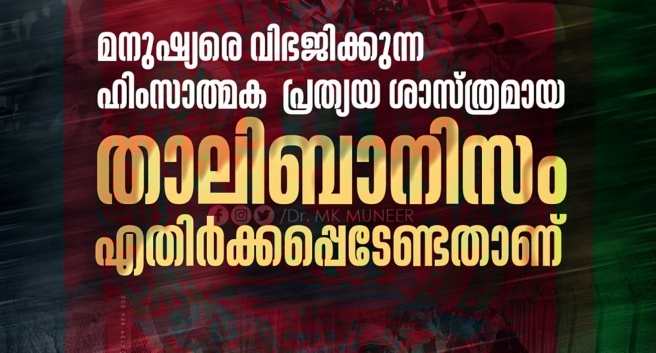 മനുഷ്യാവകാശങ്ങളെ മാനിക്കാത്ത, വിവേചനത്തിന്റെയും തീവ്ര മത മൗലിക വാദത്തിന്റെയും അപരവത്കരണത്തിന്റെയും പ്രതിലോമ രാഷ്ട്രീയമാണ് താലിബാൻ. ഇത്തരം തീവ്രമായ മനുഷ്യ വിരുദ്ധവും സ്ത്രീവിരുദ്ധവുമായ രാഷ്ട്രീയം ജാതിയുടെയും മതത്തിന്റെയും സത്വത്തിന്റെയും പേരിൽ മുന്നോട്ട് വെക്കുന്ന എല്ലാ ഐഡിയോളജിയും അപകടകരവും ജനങ്ങളുടെ സ്വൈര ജീവിതത്തിന് വിഘാതവുമാണ്. വിശ്വാസത്തിന്റെ ഏത് തലങ്ങൾ വെച്ച് നോക്കിയാലും താലിബാൻ മനുഷ്യവിരുദ്ധമാണ്. എതിർക്കപ്പെടേണ്ടതാണ്.