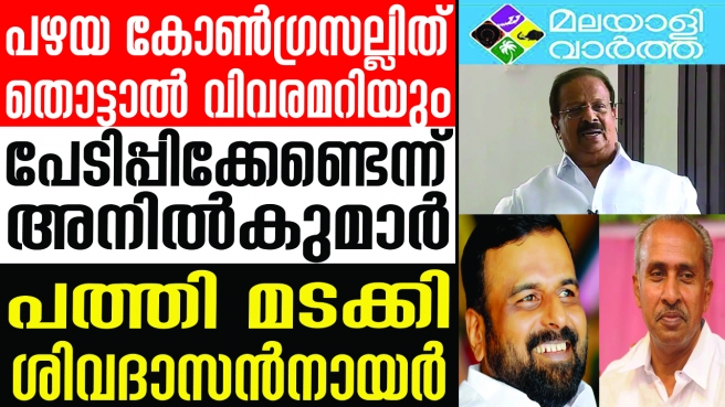 ആകാംക്ഷയോടെ ബിജെപി... പഴയതു പോലെ ചാനല് ചര്ച്ചകളില് ആഞ്ഞടിച്ച കോണ്ഗ്രസ് നേതാക്കള്ക്ക് ചര്ച്ച കഴിഞ്ഞപ്പോഴേക്കും കോണ്ഗ്രസിന് പുറത്താക്കി; സസ്പെന്ഡ് ചെയ്യപ്പെട്ട കെപി അനില്കുമാറും ശിവദാസന് നായരും പ്രതിസന്ധിയില്
