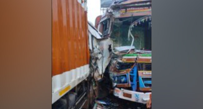 മാഹി -അഴിയൂര് ദേശീയപാതയില് ലോറികള് തമ്മിൽ കൂട്ടിയിടിച്ച് അപകടം; രണ്ട് ഡ്രൈവര്മാര് ഉള്പ്പടെ മൂന്നു പേര്ക്ക് പരിക്ക്