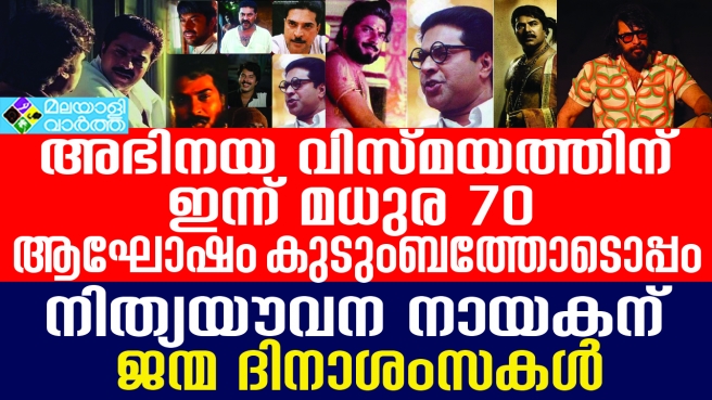 ഹൃദയത്തോട് ചേര്ക്കുമ്പോള്.... മലയാളത്തിന്റെ മഹാനടന് മമ്മൂട്ടി ഇന്ന് 70ന്റെ നിറവിലെത്തുമ്പോള് അഭിനന്ദന പ്രവാഹം; മമ്മൂട്ടി ഇന്ന് കുടുംബാംഗങ്ങള്ക്കൊപ്പം എഴുപതാം പിറന്നാള് ആഘോഷിക്കും; വേദിയാകുന്നത് മൂന്നാറിലെ റിസോര്ട്ട്