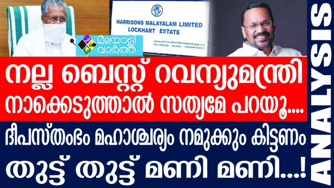 നല്ല ബെസ്റ്റ് റവന്യുമന്ത്രി .ഹാരിസണ് മലയാളം പ്ലാന്റേഷനെതിരായ വിജിലന്സ് കേസ് സര്ക്കാര് പിന്വലിക്കാന് തീരുമാനിച്ചു. പക്ഷേ റവന്യു മന്ത്രി അക്കാര്യം അറിഞ്ഞില്ല.