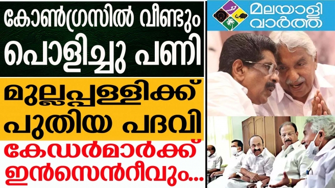 കോൺഗ്രസിൽ വീണ്ടും പൊളിച്ചു പണി... മുല്ലപ്പള്ളിക്ക് പുതിയ പദവി... കേഡര്മാര്ക്ക് ഇന്സെന്റീവും... സുധാകരന്റെ മിന്നൽ നീക്കം