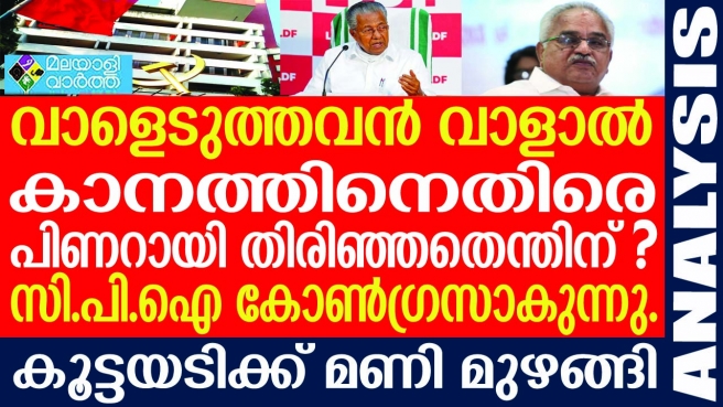 കാനത്തിനെതിരെ രംഗത്തെത്താന് ദേശീയ നേതൃത്വം പച്ചക്കൊടി വീശിക്കഴിഞ്ഞു. കഴിഞ്ഞ കുറെ വര്ഷങ്ങളായി പിണറായിയുടെ പോക്കറ്റിലാണ് കാനം. ഇതിന് പിന്നി ല് ചില രഹസ്യങ്ങളുണ്ടെന്നാണ് കാനത്തെ മനസ്സിലാക്കുന്നവര് പറയുന്നത്. കാനത്തെ പിണറായി ഹൈജാക്ക് ചെയ്തെന്നും വിശ്വസിക്കുന്നവര് ധാരാളമുണ്ട്. അതിന് പിന്നില് അഴിമതിയുടെ മണമുണ്ടെന്ന് വിശ്വസിക്കുന്ന നിരവധി സി പി ഐ നേതാക്കള് കേരളത്തിലുണ്ട്