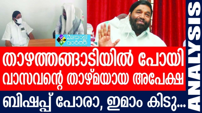 താഴത്തങ്ങാടി പള്ളിയിലെത്തിയ സഹകരണമന്ത്രി വി.എന് വാസവനെ ഇമാം ഷംസുദീന് മന്നാനി നന്നായി കൈകാര്യം ചെയ്തതായി റിപ്പോര്ട്ട്.