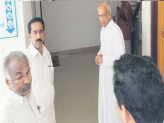 തൊടുപുഴ ടൗണ് പള്ളിയിലെത്തി കോതമംഗലം രൂപതാവികാരി ജനറല് മോണ്. ജോര്ജ് ഓലിയപ്പുറം, ഫാ. മാത്യു കുന്നപ്പിള്ളി എന്നിവരെ കണ്ടത് ജില്ലാ സെക്രട്ടേറിയറ്റ് അംഗങ്ങളായ സി.വി. വര്ഗീസ്, വി.വി. മത്തായി, തൊടുപുഴ ഏരിയാ സെക്രട്ടറി ടി.ആര്. സോമന് എന്നിവരാണ്.