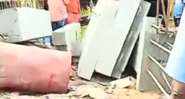 നിര്മ്മാണത്തിലിരിക്കുന്ന കെട്ടിടത്തില് സ്ഥാപിക്കാനായി കൊണ്ടുവന്ന സ്ലാബാണ് തകര്ന്നത്. ക്രെയിനില് കൊണ്ടു വന്ന സ്ലാബ് സ്ഥലത്ത് സ്ഥാപിക്കുന്നതിനിടയിലായിരുന്നു അപകടം നടന്നത്.
