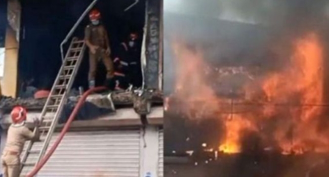 കണ്ണൂരിൽ വ്യാപാര സ്ഥാപനത്തിൽ വന് തീപ്പിടിത്തം; അഗ്നിശമന സേനയും നാട്ടുകാരും ചേര്ന്ന് തീയണക്കാനുള്ള ശ്രമം തുടരുന്നു