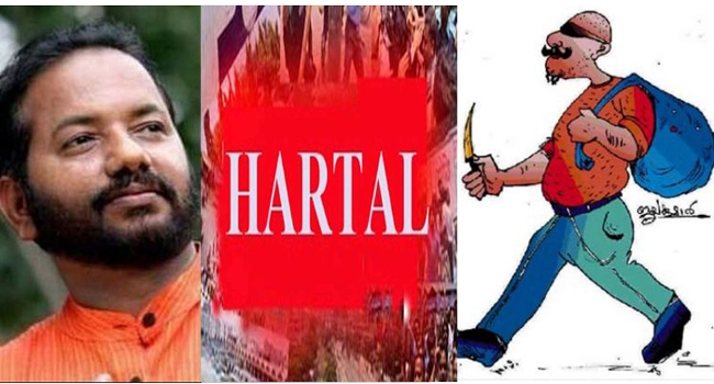 'അന്താരാഷ്ട്ര ടൂറിസ്റ്റ് ദിനത്തിന് കേരളത്തല് ഹര്ത്താല് നടത്തുന്ന CPM ടൂറിസ്റ്റ് ഗുണ്ട..! ആഗോള വിനോദ സഞ്ചാരദിനത്തില്. ഇന്റര്നാഷണല് ട്യൂറിസ്റ്റ്കള്ക്കായി കേരളത്തിന്റെ സംഭാവന...' ബിജെപി നേതാവ് എസ് സുരേഷ് കുറിക്കുന്നു