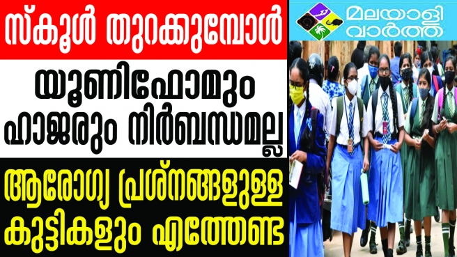 നവംബര് ഒന്നിന് സ്കൂള് തുറക്കുമ്പോള് ഹാജരും യൂണിഫോമും നിര്ബന്ധമാക്കില്ല. ആരോഗ്യ പ്രശ്നങ്ങളുള്ള കുട്ടികള് സ്കൂളില് എത്തേണ്ട. ഹയര് സെക്കന്ഡറി ക്ലാസുകള് ഒന്നിടവിട്ട ദിവസങ്ങളിലും 1 മുതല് 7 വരെയുള്ള ക്ലാസുകള് ആഴ്ചയില് 3 ദിവസവുമായിരിക്കും ഉണ്ടാവുക