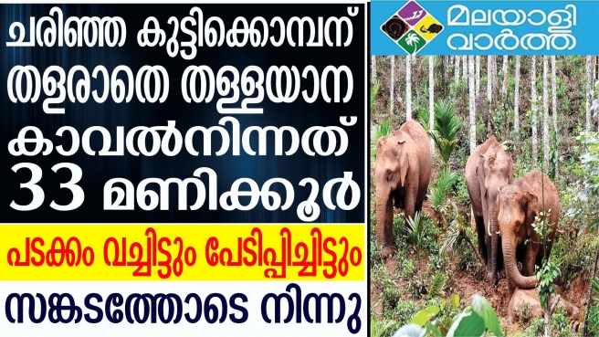 ഗൂഡല്ലൂരിലെ പന്തല്ലൂരിനുസമീപം മലവന് ചേരമ്പാടിയിലെ ചന്ദ്രന്റെ കൃഷിയിടത്തിലാണ് വെള്ളിയാഴ്ച രാത്രി ഒന്പതോടെ കുട്ടിക്കൊമ്പന് ചരിഞ്ഞത്. ജീവനറ്റ ആ പൊന്നോമന കുട്ടിക്കൊമ്പന് വേണ്ടി 33 മണിക്കൂറാണ് കാവല് നിന്നത്. ഭയപ്പെടുത്താനായി നാട്ടുകാര് പൊട്ടിച്ച പടക്കമോ വിശപ്പോ ദാഹമോ ഒന്നും അവരെ ബാധിച്ചില്ല. തള്ളയാനയുള്പ്പെടെ മൂന്നുപേര് ആ ജഡത്തിനരികെ നിലയുറപ്പിച്ചു.