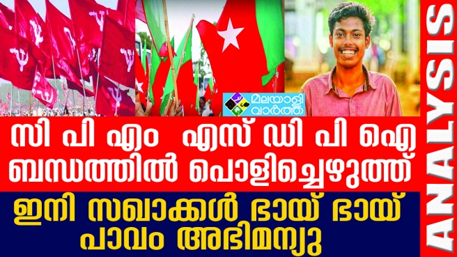 മഹാരാജാസ് കോളേജില് എസ് എഫ് ഐ പ്രവര്ത്തകനായ അഭിമന്യുവിനെ കൊലപ്പെടുത്തിയത് എസ് ഡി പി ഐ ക്കാരാണ്. യഥാര്ത്ഥ പ്രതികളെ പിടികൂടാതെ സര്ക്കാര് ഒരു പാട് കാലം തത്തി കളിച്ചു. യഥാര്ത്ഥ പ്രതികളെ അറസ്റ്റ് ചെയ്യാതിരിക്കാനും ശ്രമങ്ങളുണ്ടായി. അന്നും എന്ന് ഡി പി ഐക്കെതിരെ സി പി എം ഔദ്യോഗികമായി രംഗത്തെത്തിയില്ല. അഭിമന്യുവിനെ എസ്ഡി പി ഐ കൊല്ലുന്ന കാലത്ത് ആലുവയിലെ തദ്ദേശ സ്വയംഭരണ സ്ഥാപനത്തില് വര്ഗീയ സംഘടനയുമായി ചേര്ന്ന് ഭരിക്കുകയായിരുന്നു സിപിഎം.