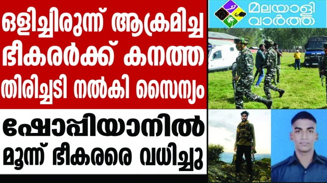 രാത്രി ഉറങ്ങാതെ സൈന്യം... ഇന്ത്യന് സൈനികരുടെ വീരമൃത്യുവിന് തിരിച്ചടിച്ച് സൈന്യം; ഷോപ്പിയാനില് മൂന്ന് ഭീകരരെ വധിച്ചു; രാത്രി മുഴുവന് നീണ്ട ഏറ്റുമുട്ടലിലാണ് സൈന്യം ലക്ഷ്കര് ഭീകരരെ വധിച്ചത്; കഴിഞ്ഞ 48 മണിക്കൂറിനിടെ സൈന്യം വധിച്ചത് അഞ്ച് കൊടും ഭീകരരെ