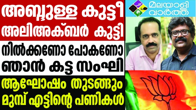 ബിജെപിക്ക് വേണ്ടി അലി അക്ബററൊക്കെ വാദിക്കുന്നത് കേട്ട് രോമം എഴുന്നേറ്റ് നില്ക്കുന്ന ഒരു കാലമുണ്ടായിരുന്നു. ഇവന് വല്ലാ പണിയുണ്ടോയെന്ന് പറഞ്ഞ് എതിരാളികള് ആക്രമിക്കുമ്പോഴും കടുത്ത ബിജെപി കാരനായി അലി അക്ബര് തുടര്ന്നു. എന്നാല് അബ്ദുള്ള കുട്ടിയുടെ വരവ് അങ്ങനെയായിരുന്നില്ല. വന്നയുടന് ദേശീയ ഉപാധ്യക്ഷന്. അലി അക്ബറാകട്ടെ സംസ്ഥാന സമിതി അംഗവും. ആ സ്ഥാനം ഇന്നലെ വലിച്ചെറിഞ്ഞു. അത് സോഷ്യല് മീഡിയ ആഘോഷിക്കുകയും ചെയ്തു. ആഘോഷം വരുന്നതിന് മുമ്പ് എട്ടിന്റെ പണി വരുമെന്ന് പറഞ്ഞതെല്ലാം വിഴുങ്ങി.