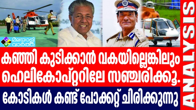 കടുത്ത സാമ്പത്തിക പ്രതിസന്ധിക്കിടയിലും വീണ്ടും ഹെലികോപ്റ്റര് വാടകയ്ക്ക് എടുക്കാനുള്ള തീരുമാനവുമായി സര്ക്കാര് മുന്നോട്ടു വന്നപ്പോള് തന്നെ ധനവകുപ്പ് എതിര്പ്പ് പ്രകടിപ്പിച്ചതാണ്. എന്നാല് കേന്ദ്ര സര്ക്കാര് തുക നല്കുമെന്നതിനാല് സംസ്ഥാന സര്ക്കാരിന് അധിക സാമ്പത്തിക ബാധ്യത വരില്ലെന്നാണ് ധനമന്ത്രിയുടെ നിലപാട്. എന്നാല് കഴിഞ്ഞ വര്ഷത്തെ തുക പോലും കിട്ടിയില്ലെന്ന് ധനവകുപ്പിലെ മിടുക്കന്മാര് ഫയലില് എഴുതിച്ചേര്ത്തു. പക്ഷേ കാരണവര്ക്ക് എന്തുമാകാം എന്ന നിലപാടില് മുഖ്യമന്ത്രിയുടെ നിലപാട് അംഗീകരിക്കാനാണ് സര്ക്കാര് തീരുമാനിച്ചത്.
