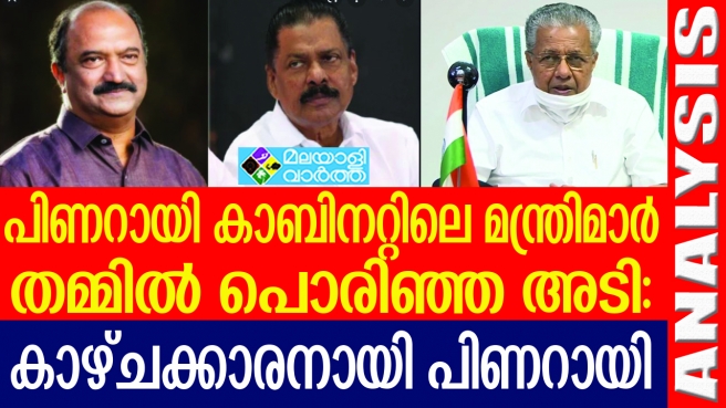പിണറായി കാബിനറ്റിലെ മന്ത്രിമാര് തമ്മില് പൊരിഞ്ഞ അടി: കാഴ്ചക്കാരനായി പിണറായി
