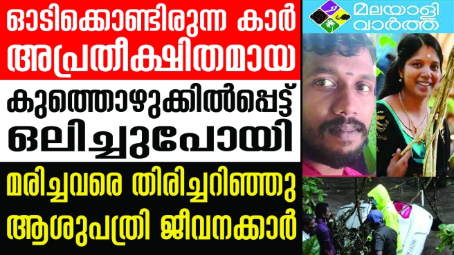 നടുക്കംമാറാതെ തൊടുപുഴ... തൊടുപുഴയില് ഓടിക്കൊണ്ടിരുന്ന കാര് ഒഴുക്കില്പ്പെട്ടു മരണമടഞ്ഞ 2 പേരേയും തിരിച്ചറിഞ്ഞു; കൂത്താട്ടുകുളം ആയുര്വേദ ആശുപത്രി ജീവനക്കാരായിരുന്നു ഇരുവരും; വാഗമണ് ഭാഗത്തുനിന്ന് കാഞ്ഞാര് ഭാഗത്തേക്ക് വരുമ്പോള് മലവെള്ളപ്പാച്ചിലില് പെട്ടാണ് അപകടം സംഭവിച്ചത്