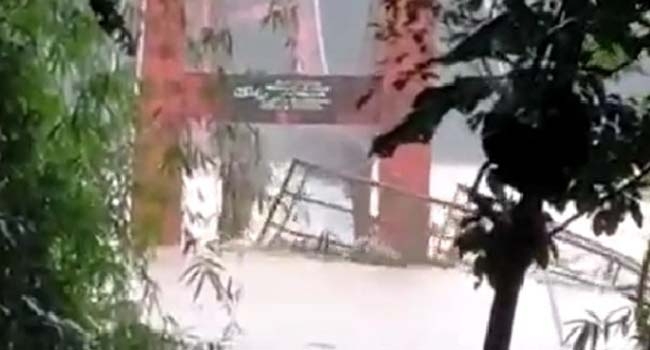 വൈകിട്ട് ആറുമണിയോടെയാണ് പാലം തകര്ന്നത്. തൂക്കുപാലത്തെ താങ്ങിനിര്ത്തുന്ന ഒരു കല്ക്കെട്ട് പൂര്ണമായും തകര്ന്നു. മല്ലപ്പള്ളി തഹസില്ദാര് പ്രദേശം സന്ദര്ശിച്ചു. മണിക്കൂറുകളായി തുടരുന്ന മഴയില് മണിമലയിലെ സ്ഥിതി രൂക്ഷമാണ്. ടൗണ് പൂര്ണമായും വെള്ളത്തിനടിയിലായി.
