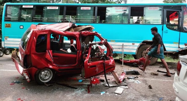 കറുകച്ചാലില് കാറും സ്വകാര്യ ബസും കൂട്ടിയിടിച്ച് അപകടം; രണ്ടുപേര് മരിച്ചു; മൂന്ന് പേർക്ക് പരിക്ക്