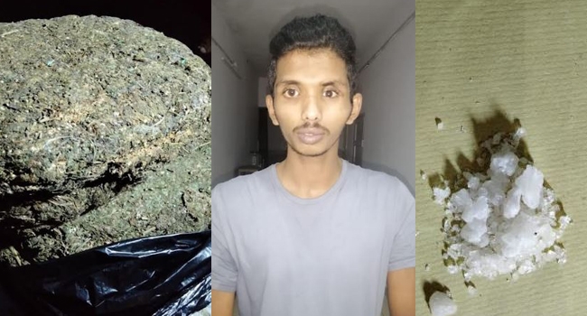 ഇതിനിടെയാണ് സംസ്ഥാനത്തിന് പുറത്ത് നിന്നും ലഹരി മരുന്നുമായി ബൈക്കില് അഭിജിത്ത് എത്തുന്നതായി വിവരം ലഭിച്ചത്. വിപണിയില് ഏഴ് ലക്ഷം രൂപ വിലവരുന്ന കഞ്ചാവും അരലക്ഷം രൂപ വിലവരുന്ന എംഡിഎംഎയുമായി മോനിപ്പള്ളി അച്ചിക്കല് ഭാഗത്ത് വച്ച് ഇന്ന് പുലര്ച്ചെ ഓടിച്ചിരുന്ന ബൈക്ക് സഹിതം അതിസാഹസികമായാണ് പൊലീസ് ഇയാളെ പിടികൂടിയത്.