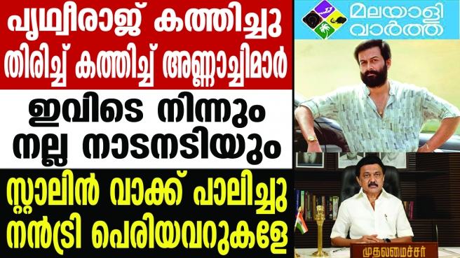 കാര്യങ്ങള് മാറിമറിയുന്നു... 125 വര്ഷം പഴക്കമുള്ള മുല്ലപ്പെരിയാര് അണക്കെട്ട് ദുര്ബലമാണെന്നും പൊളിച്ചുപണിയണമെന്നും ആവശ്യപ്പെട്ട നടന് പൃഥ്വിരാജ് ഉള്പ്പെടെയുള്ളവരുടെ കോലം കത്തിച്ച് തമിഴ്നാട്; പൃഥ്വിരാജിനെ ഉപദേശിച്ച് മന്ത്രി; കേരളത്തിന്റെ ആശങ്ക ഉള്ക്കൊണ്ട് സ്റ്റാലിന്