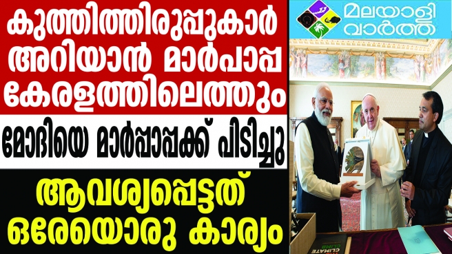 അതെങ്ങനെ ശരിയാകും... കേരളത്തിലേക്കുള്ള മാര്പ്പാപ്പയുടെ സന്ദര്ശനം ഉറപ്പാക്കി നരേന്ദ്ര മോദി; ഒരുവര്ഷത്തിനുള്ളില് സന്ദര്ശനമുണ്ടാകുമെന്ന് പ്രതീക്ഷ; വത്തിക്കാന് അംഗീകാരം നല്കുന്നതോടെ പരിപാടികള്ക്ക് അന്തിമമാകും