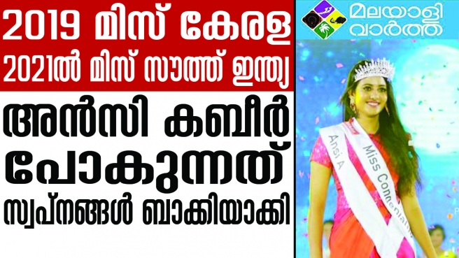 കണ്ണീരോടെ സുഹൃത്തുക്കള്... മിസ് കേരള 2019 അന്സി കബീര്, മിസ് കേരള 2019 റണ്ണറപ്പ് അഞ്ജന ഷാജന് എന്നിവരുടെ മരണത്തില് ഞെട്ടി മലയാളികള്; മിസ് സൗത്ത് ഇന്ത്യയും മിസ് കേരളയും സ്വന്തമാക്കിയ അന്സിയുടെ വാക്കുകള് ഇപ്പോഴും അലയടിക്കുന്നു