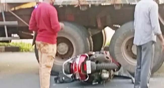 സ്കൂട്ടറില് ചരക്ക് ലോറിയിടിച്ച് വീട്ടമ്മയ്ക്ക് ദാരുണാന്ത്യം, ഭര്ത്താവ് പരിക്കുകളോടെ ആശുപത്രിയില്