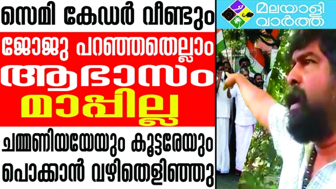 നടന് ജോജു ജോര്ജിന്റെ കാര് തകര്ത്ത കേസ് ഒത്തുതീര്ക്കാന് നെട്ടോട്ടമോടിയ കോണ്ഗ്രസുകാരെ കാണുമ്പോള് ഇതാണോ സെമി കേഡര് എന്ന് ചോദിച്ചു പോകും. തനിക്കെതിരെ കോണ്ഗ്രസ് നല്കിയ കേസുകള് പിന്വലിച്ചാലും പരസ്യമായി ഖേദപ്രകടനം നടത്താതെ പ്രശ്നം തീരില്ലെന്ന നിലപാടില് ജോജു ഉറച്ചുനിന്നതാണ് നേതാക്കളെ പ്രതിസന്ധിയിലാക്കിയത്.