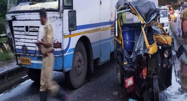 നിയന്ത്രണം വിട്ട കെ.എസ്.ആർ.ടി.സി ബസ് ഓട്ടോറിക്ഷയിലിടിച്ച് അപകടം; ഓട്ടോറിക്ഷ ഡ്രൈവർക്ക് ദാരുണാന്ത്യം