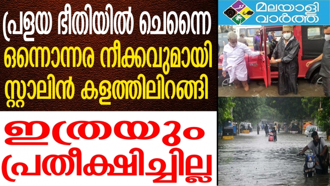 ചെന്നൈയില് തീവ്രമഴ... ചക്രവാത ചുഴി മൂലം ചെന്നൈയില് തീവ്രമഴ തുടരുന്നു; മുട്ടോളം വെള്ളത്തിലിറങ്ങി മുഖ്യമന്ത്രി എംകെ സ്റ്റാലിന് മുന്നിട്ടിറങ്ങി ദുരിതാശ്വാസ പ്രവര്ത്തനങ്ങള് ഏകോപിപ്പിക്കുന്നു; പഴയ പ്രളയ ഭീതിയില് ചെന്നൈ നഗരം; മഴ കുറയാനായി പ്രാര്ത്ഥന