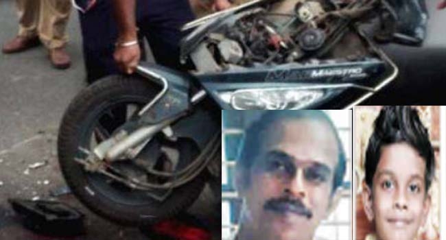 കുളത്തൂര് ഗുരുനഗര് ബൈപ്പാസ് ജംഗ്ഷനില് കെ.എസ്.ആര്.ടി.സി ബസിന് പിന്നില് സ്കൂട്ടറിടിച്ചാണ് തൃശൂര് പാഴായി പനിയത്ത് വീട്ടില് രാജേഷ് (36), മകന് ഋത്വിക് (5) എന്നിവര്ക്കാണ് ദാരുണാന്ത്യമുണ്ടായത്. ഇന്നലെ ഉച്ചയ്ക്കാണ് നാടിനെ നടുക്കിയ അപകടമുണ്ടായത്. ജോലിസംബന്ധമായി എറണാകുളത്ത് പോകേണ്ടതിനാല് ഭാര്യയെയും മകനെയും കിളിമാനൂരിലെ സുഹൃത്തിന്റെ വീട്ടിലാക്കാന് സ്കൂട്ടറില് വരുമ്പോഴായിരുന്നു അപകടം നടന്നത്.