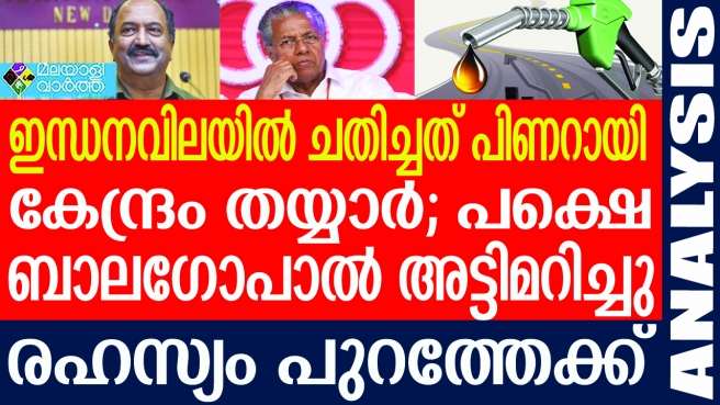 പെട്രോള് ഡീസല് വില ജി എസ് ടി യില് ഉള്പ്പെടുത്തുന്നതിനെ കേരളം എതിര്ക്കുക മാത്രമല്ല ജി എസ് ടി യില് ഉള്പ്പെടുത്തുന്നത് തടയാന് മറ്റ് സംസ്ഥാനങ്ങളെ കൂടി അണിനിരത്തി, ധന മന്ത്രിയുടെ നേത്യത്വത്തില് അട്ടിമറി ശ്രമം നടന്നതെന്ന് സൂചന .... രഹസ്യം പുറത്തേക്ക്