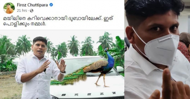 മയിലിനെ കറിവെക്കാനായി ദുബായിലേക്കെന്ന യൂട്യൂബര് ഫിറോസ് ചുട്ടിപ്പാറയുടെ സോഷ്യന് മീഡിയ പോസ്റ്റിന് നേരെ കടുത്ത വിമർശനങ്ങൾ. ഇന്ത്യയില് നിയമവിരുദ്ധമായതിനാല് മയിലിനെ കറിവെക്കാനായി ദുബായിലേക്ക് പോകുന്നു എന്ന ക്യാപ്ഷനില് ഫിറോസ് പുറത്തുവിട്ട വീഡിയോയാണ് വിമര്ശനങ്ങള്ക്ക് വഴി ഒരുക്കിയിരിക്കുന്നത്.