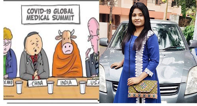 ലോകമാകമാനം പകച്ചുനിന്ന കറുത്തിരുണ്ട ദിനങ്ങളെ സമ്മാനിച്ച , ലക്ഷകണക്കിന് മനുഷ്യരെ കൊന്നൊടുക്കാൻ കാരണമായ കൊറോണയെന്ന കൊടും ഭൂതത്തെ തുറന്നുവിട്ട ചൈനയെന്ന ലോകവിപത്തിനെ അവരോധിച്ച് , അതിന്റെ പ്രതിനിധിക്ക് കോട്ടും സൂട്ടും പത്രാസും നല്കിയ മലീമസമായ ആവിഷ്കാരചിന്താധാര ഇന്ത്യയെന്ന മാതാവിനെ പകർത്തിയത് കാവിയും പശുവുമായിട്ടാണ്.