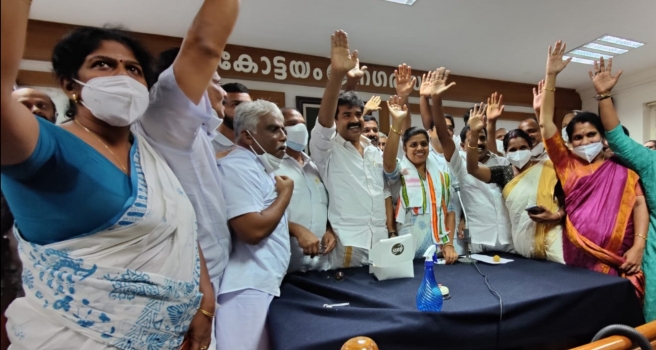 കോട്ടയം നഗരസഭയിൽ ബി.ജെ.പിയുമായി സഖ്യമുണ്ടാക്കിയാണ് അധികാരം പിടിച്ചെടുക്കാൻ സി.പി.എമ്മും ഇടതുമുന്നണിയും തന്ത്രം പയറ്റിയത്. എട്ട് ബി.ജെ.പി അംഗങ്ങൾ അവിശ്വാസ പ്രമേയ ചർച്ചയിൽ കോൺഗ്രസിനെ എതിർത്ത് എൽ.ഡി.എഫിന് വോട്ട് ചെയ്തു. ഇതോടെ ഭരണം താഴെ വീണു.