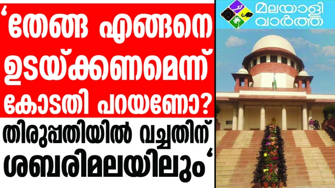തിരുപ്പതി ക്ഷേത്രത്തിലെ ചടങ്ങുകളില് ക്രമക്കേടുണ്ടെന്നുകാട്ടി ഭക്തന് നല്കിയ ഹര്ജി തീര്പ്പാക്കിക്കൊണ്ടാണ് സുപ്രീംകോടതിയുടെ പരാമര്ശം. തേങ്ങ എങ്ങനെ ഉടയ്ക്കണമെന്നും ആരതി എങ്ങനെ നടത്തണമെന്നും കോടതി പറയണോയെന്ന് പരാതിക്കാരനായ ശ്രീവരി ദാദയോട് ചീഫ് ജസ്റ്റിസ് ചോദിച്ചു.