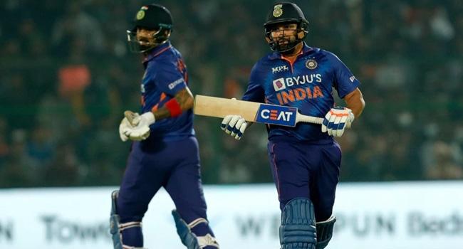 വന് സ്കോര് വിജയലക്ഷ്യവുമായി ഇറങ്ങിയ ഇന്ത്യക്ക് മികച്ച തുടക്കമാണ് ഓപ്പണര്മാരായ കെ എല് രാഹുലും രോഹിത് ശര്മ്മയും ചേര്ന്ന് നല്കിയത്. അഞ്ച് ഓവറിനുള്ളില് തന്നെ ഇരുവരും ചേര്ന്ന് ഇന്ത്യന് സ്കോര് 50 കടത്തി. എന്നാല് തൊട്ടടുത്ത പന്തില് തന്നെ സാന്റ്നറിന്റെ പന്തില് ചാപ്മാന് ക്യാച്ച് നല്കി കെ എല് രാഹുല് പുറത്തായി. 14 പന്തില് നിന്ന് 15 റണ്സ് ആയിരുന്നു രാഹുലിന്റെ സമ്ബാദ്യം.