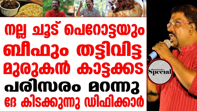 നല്ല ചൂട് പെറോട്ടയും ബീഫും കഴിച്ച് ആവേശത്തോടെ കവി മുരുകന് കാട്ടാക്കട നടത്തിയ പ്രസംഗം ഡിഫിക്കാര്ക്ക് പാരയാകുന്നു. ഇടതുപക്ഷ ചിന്താഗതിക്കാരനായ കവിയെ കൊണ്ട് രണ്ട് വര്ത്തമാനം പറയിപ്പിക്കാന് ശ്രമിച്ചതാണ് അബദ്ധമായത്.