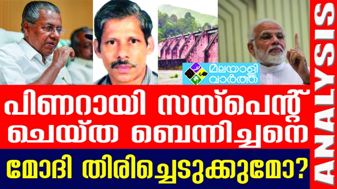 പിണറായി സസ്പെന്റ് ചെയ്ത ബെന്നിച്ചന് തോമസിനെ നരേന്ദ്ര മോദി തിരിച്ചെടുക്കുമോ? ബെന്നിച്ചന്റെ സസ്പെഷന്ഷന് തങ്ങള് അറിഞ്ഞില്ലെന്നും അതിനാല് സസ്പെന്ഷന് നിയമപരമല്ലെന്നുമാണ് കേന്ദ്ര സര്ക്കാരിന്റെ നിലപാട്.