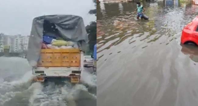 ചെന്നൈയില് പെയ്ത കനത്തമഴയില് റോഡുകളിലും വീടുകളിലും വെള്ളംകയറി. റോഡുകളിലെ വെള്ളക്കെട്ട് കാരണം പല സ്ഥലങ്ങളിലും വന് ഗതാഗതക്കുരുക്കാണ് രൂപപ്പെട്ടത്. മൂന്നടിയിലധികം വെള്ളം കയറിയ റോഡുകളില് ഗതാഗതം നിരോധിച്ചു. ചേരിപ്രദേശങ്ങളിലെ കുടിലുകളില് താമസിക്കുന്നവരെ ദുരിതാശ്വാസകേന്ദ്രങ്ങളിലേക്ക് മാറ്റി.