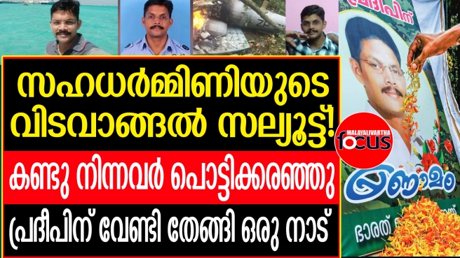 പ്രദീപിന്റെ ചിതയ്ക്കു മുന്നിൽ ബ്യൂഗിൾ മുഴക്കി അന്ത്യാഭിവാദം അർപ്പിക്കുന്നതിനിടെ ശ്രീലക്ഷ്മി മുന്നോട്ടുവന്നു സല്യൂട്ട് ചെയ്തു...കൂനൂർ ഹെലികോപ്റ്റർ ദുരന്തത്തിൽ മരിച്ച പ്രിയതമനു സഹധർമ്മിണിയുടെ വിടവാങ്ങൽ സല്യൂട്ട്. കണ്ണ് നിറയാതെ ആർക്കും കാണാനാകില്ല ആ കാഴ്ച....