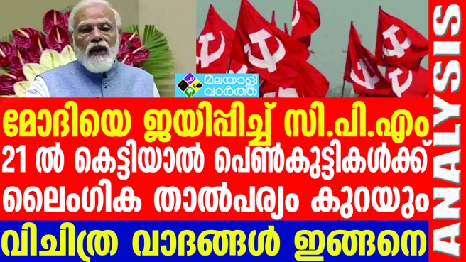 പെണ്കുട്ടികളുടെ വിവാഹപ്രായം 21 ആക്കുന്നതിനെ എതിര്ത്ത് സി പി എം രംഗത്തുവന്നതോടെ ജയിച്ചത് നരേന്ദ്ര മോദി....21 ല് കെട്ടിയാല് ലൈംഗിക താല്പര്യം താമസിക്കുമോ? വിചിത്ര വാദങ്ങളിങ്ങനെ...