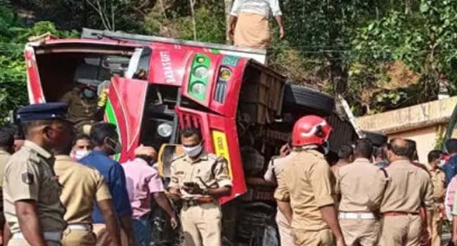 സംരക്ഷണ ഭിത്തിയില് തട്ടി നിന്നതിനാല് ബസ് താഴ്ചയിലേക്ക് വീണില്ല. ബസില് കുടുങ്ങിയ നിലയിലായിരുന്നു ഡ്രൈവറെന്നും രക്ഷാപ്രവര്ത്തകര് പറഞ്ഞു. ആന്ധ്രയില്നിന്നുള്ള തീര്ഥാടകരാണ് അപകടത്തില്പ്പെട്ടത്. അഗ്നിശമന സേനയടക്കം സ്ഥലത്തെത്തി രക്ഷാപ്രവര്ത്തനം ആരംഭിച്ചിട്ടുണ്ട്. അപകടത്തില് പരിക്കേറ്റവരെ എരുമേലി സര്ക്കാര് ആശുപത്രിയില് പ്രവേശിപ്പിച്ചു.