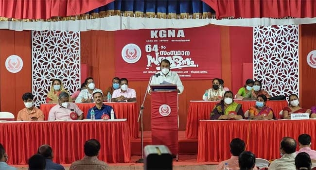 കേന്ദ്രം കൊണ്ടുവരുന്ന തൊഴില് കോഡുകളിലെ തൊഴിലാളി വിരുദ്ധ നയങ്ങള് സംബന്ധിച്ച് പരിശോധിക്കും. തൊഴിലാളി വിരുദ്ധ നയങ്ങള് നടപ്പാക്കില്ല എന്നതാണ് സര്ക്കാര് നയമെന്ന് മന്ത്രി വ്യക്തമാക്കി. ആരോഗ്യ മേഖലയില് സുപ്രധാന വിഭാഗമാണ് നേഴ്സുമാര് . ബഹു ഭൂരിപക്ഷം നേഴ്സുമാരേയും പ്രതിനിധാനം ചെയ്യുന്ന പ്രസ്ഥാനമാണ് കെ.ജി.എന്.എ . 1957 ല് രൂപീകൃതമായ ഈ സംഘടനയുടെ പ്രവര്ത്തനങ്ങളുടെ ഫലമായി നേഴ്സിംഗ് മേഖലയുടെ സാമൂഹ്യ അംഗീകാരം ഇന്ന് ഏറെ ഉയര്ന്നിട്ടുണ്ട്.