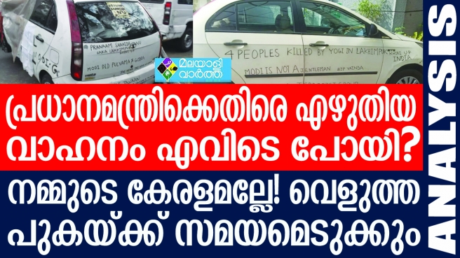 പ്രധാനമന്ത്രി നരേന്ദ്ര മോദിക്ക് എതിരെയുള്ള വാക്കുകളെഴുതിയ വാഹനം തിരുവനന്തപുരത്തെ പട്ടത്ത് നിന്ന് പൊലീസ് കസ്റ്റഡിയില് എടുത്ത കേസാണ് തേഞ്ഞു മാഞ്ഞു പോകുന്നത്.