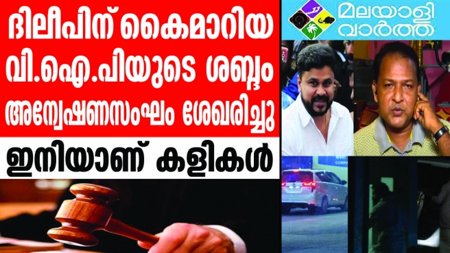 പല കേസുകളിലും പലതരം വിഐപികളെ കേട്ടിട്ടുണ്ടെങ്കിലും നടിയെ ആക്രമിച്ച കേസിലും ഒരു വിഐപി പൊങ്ങി വരികയാണ്. ആ വിഐപി ഉടന് പുറത്ത് വരുമെന്നാണ് കരുതുന്നത്. നടിയെ ആക്രമിച്ച ദൃശ്യങ്ങള് നടന് ദിലീപിന് കൈമാറിയ വി.ഐ.പിയുടെ ശബ്ദസാമ്പിളുകള് പ്രത്യേക അന്വേഷണസംഘം ശേഖരിച്ചു.