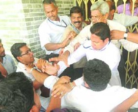 സംസ്ഥാന വ്യാപകമായി നടത്തിയ വിദ്യാഭ്യാസ ബന്ദിനോടനുബന്ധിച്ചു കോളജിലേക്കു പ്രകടനമായെത്തിയ കെഎസ്യു ജില്ലാ പ്രസിഡന്റ് നിയാസ് കൂരാപ്പിള്ളിയുടെ നേതൃത്വത്തിലുള്ള 30 അംഗ സംഘമാണു കോളജില് അക്രമം നടത്തിയത്.
