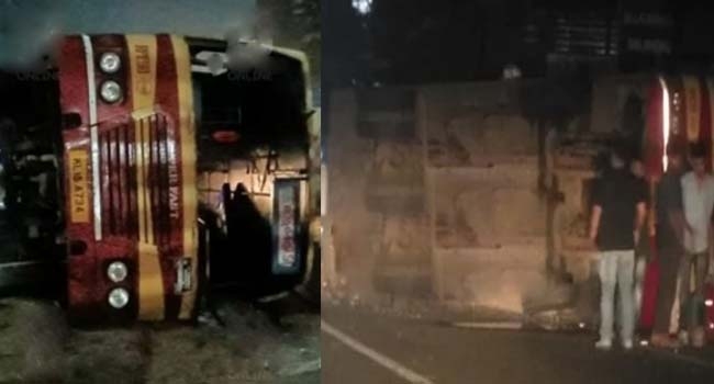 കോട്ടയം അടിച്ചിറയില് കെഎസ്ആര്ടിസി ബസ് നിയന്ത്രണം വിട്ട് മറിഞ്ഞു. ചൊവ്വാഴ്ച പുലര്ച്ചെ 2.15ഓടെയാണ് സംഭവം. കോട്ടയത്തുനിന്നും മാട്ടുപ്പെട്ടിക്കു പോകുകയായിരുന്ന ബസാണ് അപകടത്തില്പ്പെട്ടത്.
