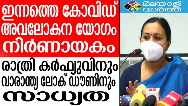 പഴയ കാലത്തേക്ക് വീണ്ടും... സംസ്ഥാനത്ത് കോവിഡ് കുതിച്ചുയര്ന്ന സാഹചര്യത്തില് ഇന്നത്തെ കോവിഡ് അവലോകന യോഗം നിര്ണായകം; സംസ്ഥാനം കൂടുതല് നിയന്ത്രണങ്ങളിലേക്ക്; വാരാന്ത്യ ലോക്ക്ഡൗണിനും രാത്രി കര്ഫ്യുവിനും സാദ്ധ്യത; പൊതുസ്ഥലങ്ങളില് ആള്ക്കൂട്ടം പരമാവധി കുറയ്ക്കും
